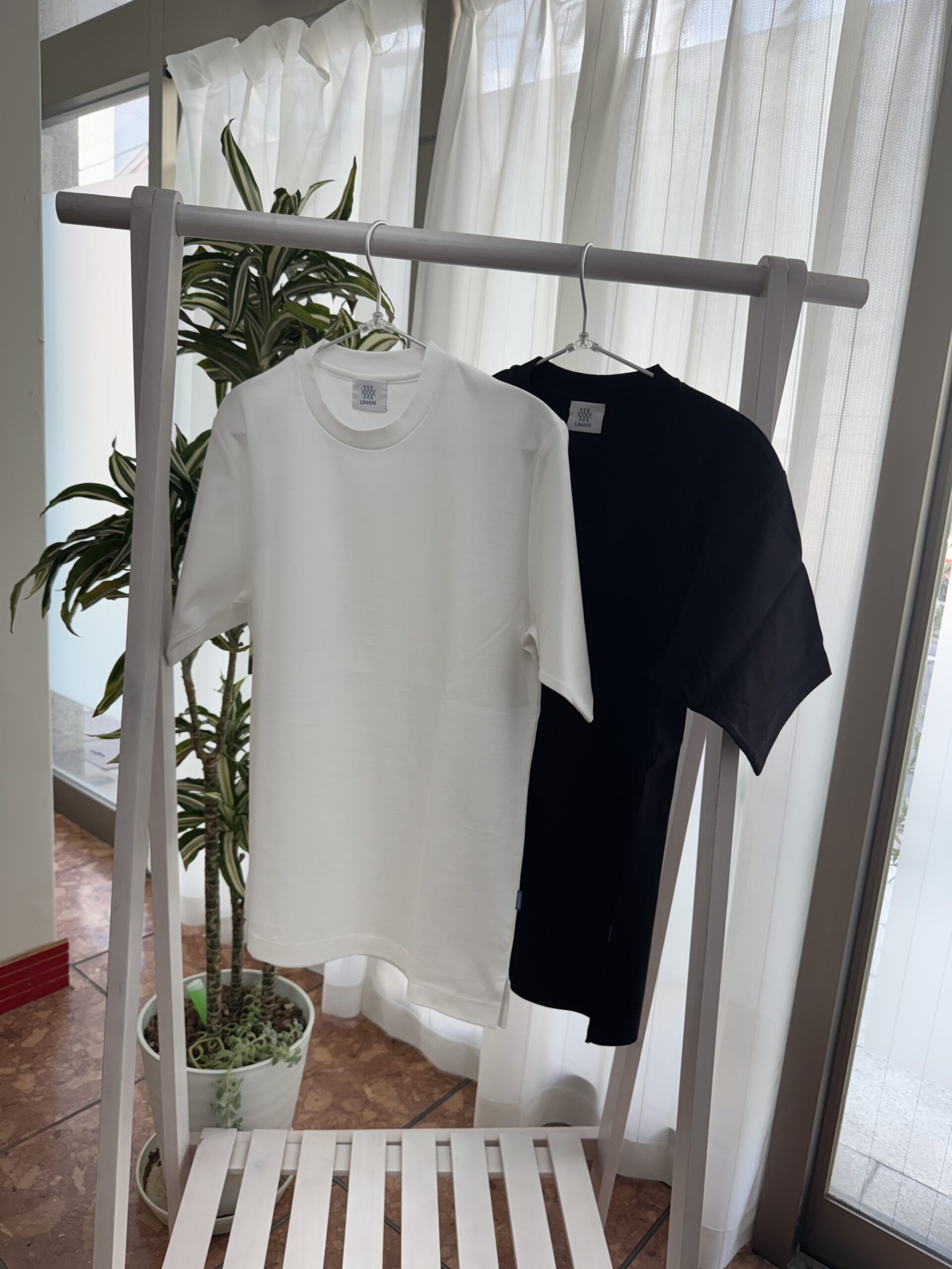 通常のTシャツとは異なり、生地がしっかりして綺麗なスタイリングが可能です。¥6,000(税込) BUSINESS事業内容
